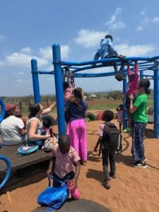 Lunchtime arrives as a break from playtime. We eat our peanut butter and jelly sandwiches and our apple and our “nik naks” (the Swazi version of Cheetos) for lunch. At the same time, the masses of children eat their rice mixture for lunch. How I wish they could have a balanced meal even once a day!